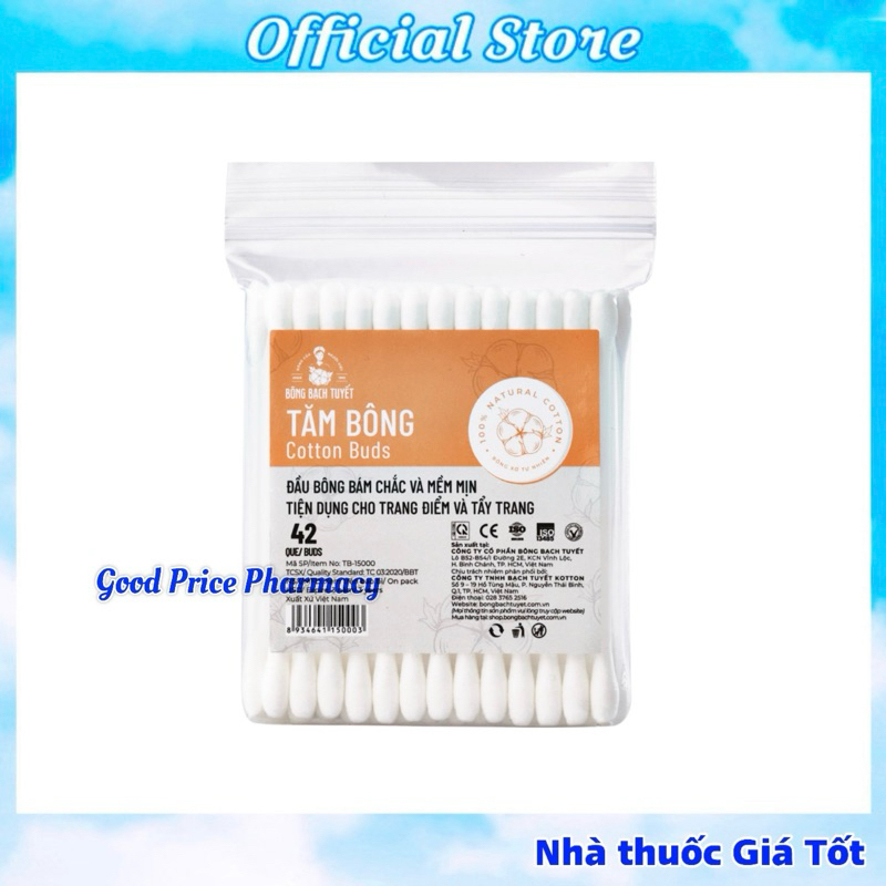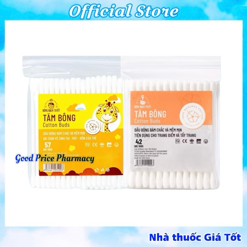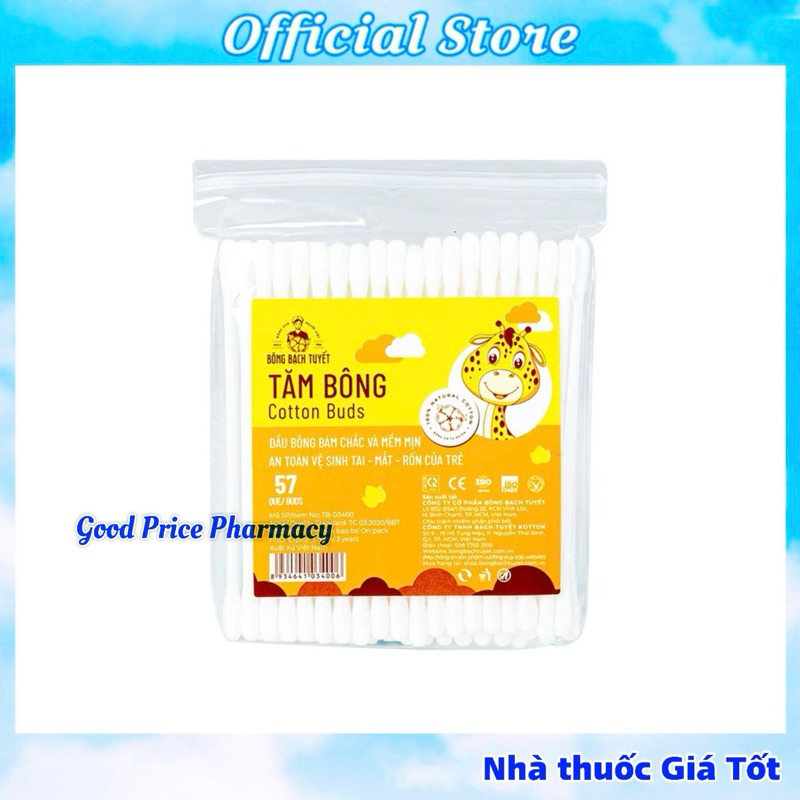 Bông ngoáy tai Bạch Tuyết ✅ Thương hiệu: Bông Bạch Tuyết – một thương hiệu Việt Nam lâu năm (hơn 60 năm), chuyên sản xuất tăm bông y tế chất lượng cao ✅ Bao bì :Thường được đóng trong túi zip nhựa, tiện lợi để bảo quản sau khi mở .✅ Chất liệu: • Hai đầu bông: 100 % cotton thiên nhiên, mềm mại, thấm hút tốt . • Thân que: bằng nhựa đàn hồi chịu nhiệt hoặc polypropylene, chắc chắn . • Công dụng: • Vệ sinh tai (lấy ráy tai, lau nước sau khi tắm hoặc bơi). • Vệ sinh vết thương nhỏ, lau mũi, trang điểm .✅ Ưu điểm • Đầu bông mềm, an toàn với da nhạy cảm. • Hút nước, ráy tai và bụi nhẹ hiệu quả. • Bao đóng zip tiện lợi, giữ sạch và bảo quản tốt.✅ Quy cáchTrẻ em: 57 que / túiNgười lớn: 42 que / túi