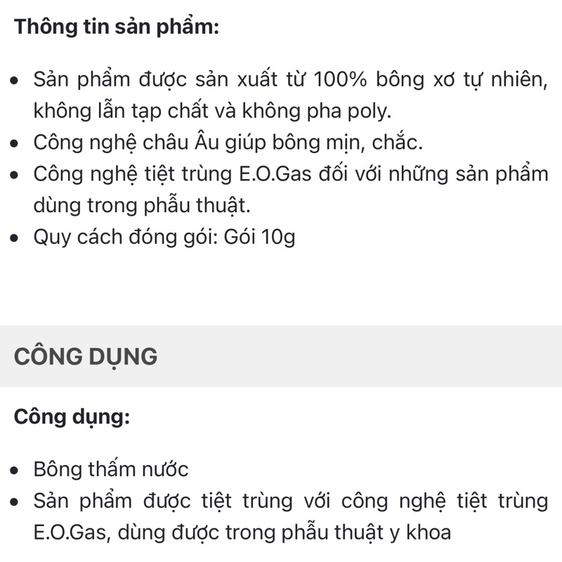 Bông Thấm Nước Y Tế Bạch Tuyết Gói 10g