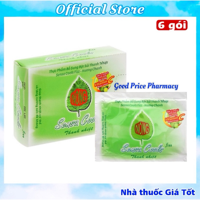 🧪 Thành phần chínhMỗi gói Sensa Cools (7g) chứa các thành phần từ thiên nhiên và vitamin C, bao gồm:Chiết xuất chanh (0,35g)Chiết xuất Alyxia Stellata (1,05g)Vỏ quế (0,01g)Vitamin C (0,09g)Đường sucrose (3,14g).Các tá dược khác như acid citric, aspartame, sodium bicarbonate và hương chanh tự nhiên. 👨👩👧👦 Đối tượng sử dụngNgười lớn và trẻ em từ 6 tuổi trở lên.Người bị nóng trong người, Người cần bổ sung vitamin C hoặc muốn tăng cường sức đề kháng. 💧 Cách dùng và liều lượngNgười từ 12 tuổi trở lên: 1 gói/lần, 2–3 lần/ngày.Trẻ em từ 6 đến dưới 12 tuổi: ½ gói/lần, 2–3 lần/ngày.Cách dùng: Hòa tan gói bột sủi trong 150–250ml nước đun sôi để nguội, khuấy đều cho tan hoàn toàn. Ngon hơn khi uống lạnh. ⚠️ Lưu ý khi sử dụngKhông sử dụng cho người mẫn cảm với bất kỳ thành phần nào của sản phẩm.Không pha với nước nóng để tránh ảnh hưởng đến hiệu quả của sản phẩm.Không dùng quá liều khuyến cáo.Phụ nữ mang thai hoặc đang cho con bú nên tham khảo ý kiến bác sĩ trước khi sử dụng.📦 Thông tin sản phẩmThương hiệu: Sensa (thuộc tập đoàn Enesis, Indonesia).Quy cách đóng gói: Hộp 6 gói x 7g.