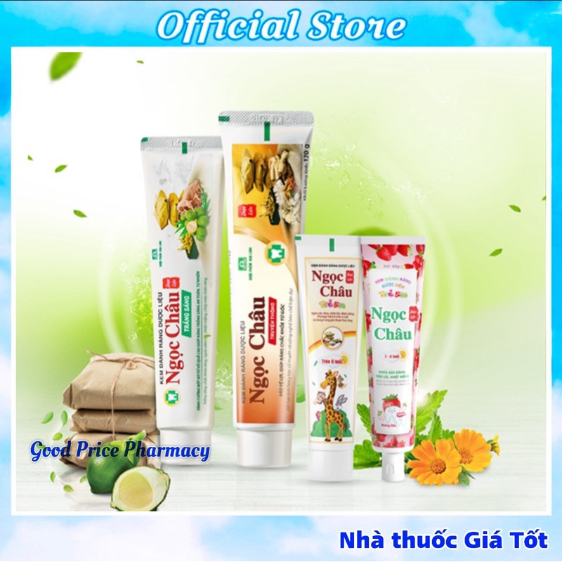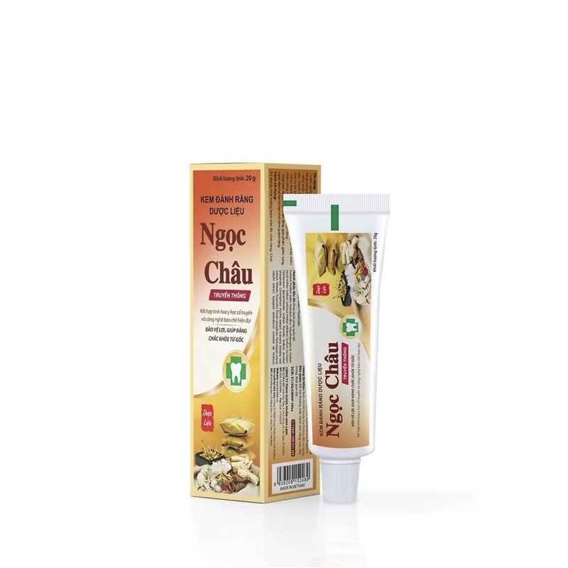 Kem Đánh Răng Dược Liệu Ngọc Châu 125g,170g, Trắng Sáng,Trẻ Em 2-6 Tuổi,Trên 6 Tuổi-Bào chế từ 8 loại dược liệu quý, Vitamin và Muối. Công dụng: Không chỉ chăm sóc bên ngoài như các kem đánh răng thông thường mà thấm sâu vào lợi, tăng cường tuần hoàn máu tới lợi và tủy răng, nuôi dưỡng răng lợi từ gốc, giúp ngăn ngừa bệnh răng lợi thường gặp & khử mùi thức ăn, thuốc lá… và giữ răng trắng tự nhiên.ĐẶC ĐIỂM:- Bào chế từ Dược liệu (8 loại dược liệu quý), Vitamin và Muối.- Không chỉ chăm sóc bên ngoài như các kem đánh răng thông thường mà thấm sâu vào lợi, tăng cường tuần hoàn máu tới lợi và tủy răng, nuôi dưỡng răng lợi từ gốc.- Ngăn ngừa bệnh răng lợi thường gặp : Viêm lợi, tụt lợi, viêm quanh chân răng, chảy máu chân răng, phòng sâu răng, đau răng hiệu quả.- Khử mùi thức ăn, thuốc lá… và giữ răng trắng tự nhiên.HSD: 3 năm kể từ ngày sản xuất#kemdanhrang #kemdanhrangthaoduoc #kemdanhrangnguoilon #ngocchau #kemdanhrangtreem #kemdanhrangtrangrang #kemdanhrangchongebuot #kemdanhrangchongsaurang