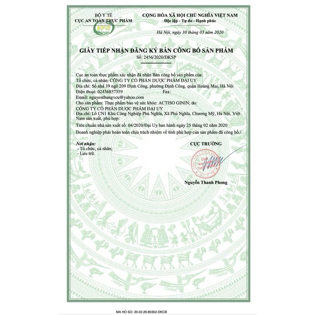 COMBO 10 TUÝP SỦI ACTISOGININ ĐẠI UY (TUÝP 20 VIÊN)