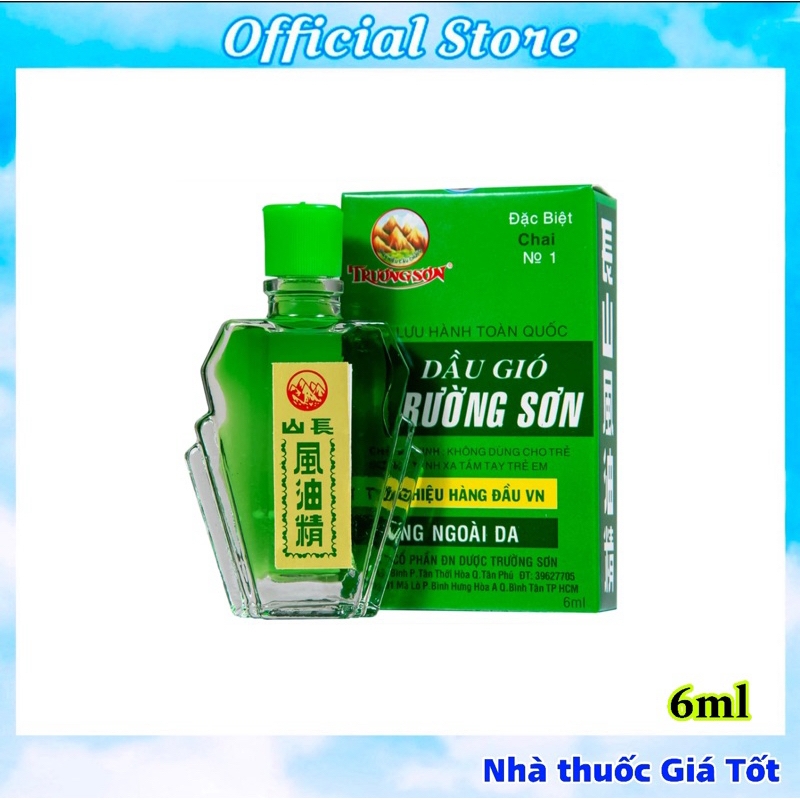 ️🍀Dầu gió Trường Sơn với các thầnh phần từ tinh dầu tự nhiên giúp hỗ trợ khi bị cảm cúm, nhức đầu, sổ mũi, say tàu xe, sưng viêm, đau trật gân, muỗi chích, kiến cắn, buồn nôn, đau bụng, nhức mỏi... Tiện lợi cho sức khỏe gia đình bạn.️🍀Thành phần:Chiết xuất tinh dầu bạc hà: 3g, Menthol: 22g, tinh dầu đinh hương: 0.2g, long não: 2g, Eucalypol: 4.8g.Dầu Parafin vđ: 100ml.️🍀Công dụng:Hỗ trợ trong cảm ho, sổ mũi, nhức đầu, đau bụng, chóng mặt, nhức mỏi tay chân, say sóng khi đi tàu xe, buồn nôn, sưng viêm, trật gân, kiến cắn, muỗi chích...️🍀Cách sử dụng: Thoa và xoa bóp chỗ đau, pha với nước ấm để xông, thoa bôi lên mũi để hít và ngửi.️🍀Bảo quản: Nơi khô ráo thoáng mát, tránh ánh nắng trực tiếp.Dung tích: Chai 6mlXuất xứ thương hiệu: Việt NamSản xuất tại: Việt Nam #shopee #giarenhatthitruong #giatotnhatshopee #si #deal #thucphamchucnang #sứckhỏevàsắcđẹp #dealhot #nhathuoc #nhàthuốc #giásỉ #daugioxanh #dầugióxanhtrườngsơn #daugio #freeshipDầu gió Trường Sơn với các