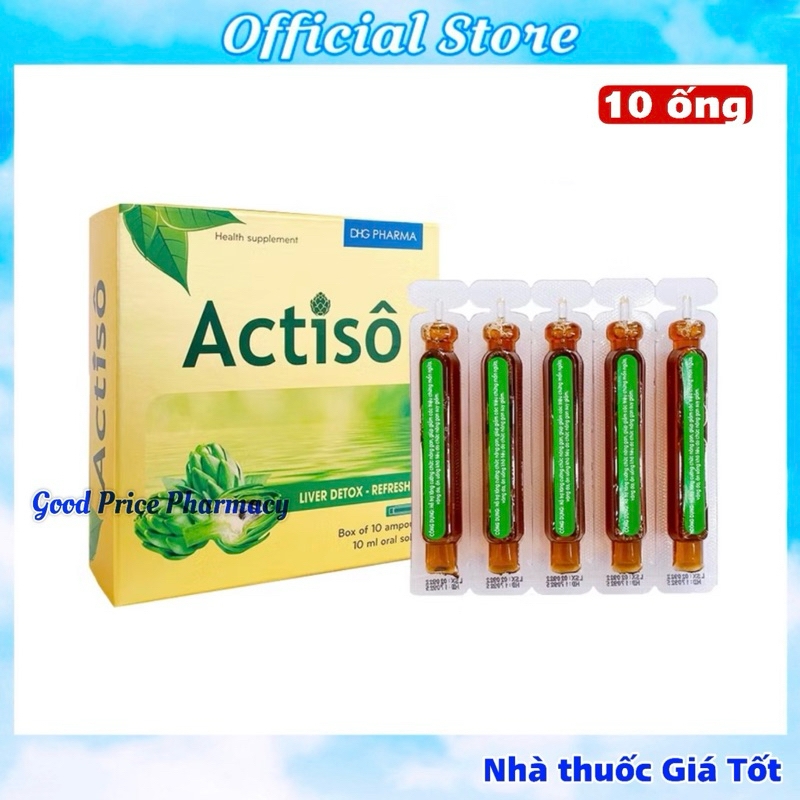 Actiso DHG✅ QUY CÁCH: Hộp 10 ống x 10ml.THƯƠNG HIỆU: DHG - DƯỢC HẬU GIANG.✅ MÔ TẢ:- Actisô DHG được bào chế thành dung dịch uống với thành phần 100% actisô cô đặc, giữ trọn giá trị của dược liệu và đẩy mạnh hiệu quả lên nhiều lần so với sử dụng actisô thông thường. Sản phẩm đóng gói thành từng tuýp nhỏ, giúp người dùng phân liều và thuận tiện để sử dụng mọi nơi. - Cao actisô: Chứa các chất oxy hóa cynarin và axit caffeoylquinic, giúp loại bỏ độc tố khỏi cơ thể, sửa chữa các tế bào gan bị tổn thương, bảo vệ và cải thiện chức năng gan. Giúp làm tăng bài tiết dịch mật, chất dịch quan trọng trong tiêu hóa, bằng cách tăng hoạt động các enzyme, tăng lưu lượng máu đến gan. Nhờ đó, actisô giúp nhuận tràng, khắc phục các chứng khó tiêu kèm cảm giác đầy trướng bụng, đau bụng, buồn nôn và nôn, kích thích cảm giác ngon miệng.✅ THÀNH PHẦN:- Cao khô actiso.............280mg.✅ CÔNG DỤNG:- Actisô DHG hỗ trợ tăng cường chức năng gan, làm giảm các triệu chứng mẩn ngứa, vàng da, ăn uống khó tiêu do chức năng gan suy giảm.✅ ĐỐI TƯỢNG SỬ DỤNG:- Người có chức năng gan suy giảm, men gan cao, viêm gan.- Người hay sử dụng rượu bia, thuốc dài ngày gây hại đến gan.✅ HƯỚNG DẪN SỬ DỤNG:- Người lớn: Uống 1 - 2 ống/lần x 2 lần/ngày.- Trẻ em trên 2 tuổi: Uống 1/2 - 1 ống/lần x 2 lần/ngày.- Uống trực tiếp hay pha loãng với nước.____________________- Thực phẩm này không phải là thuốc và không có tác dụng thay thế thuốc chữa bệnh. - Không sử dụng cho người có mẫn cảm với bất kỳ thành phần nào của sản phẩm.