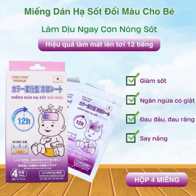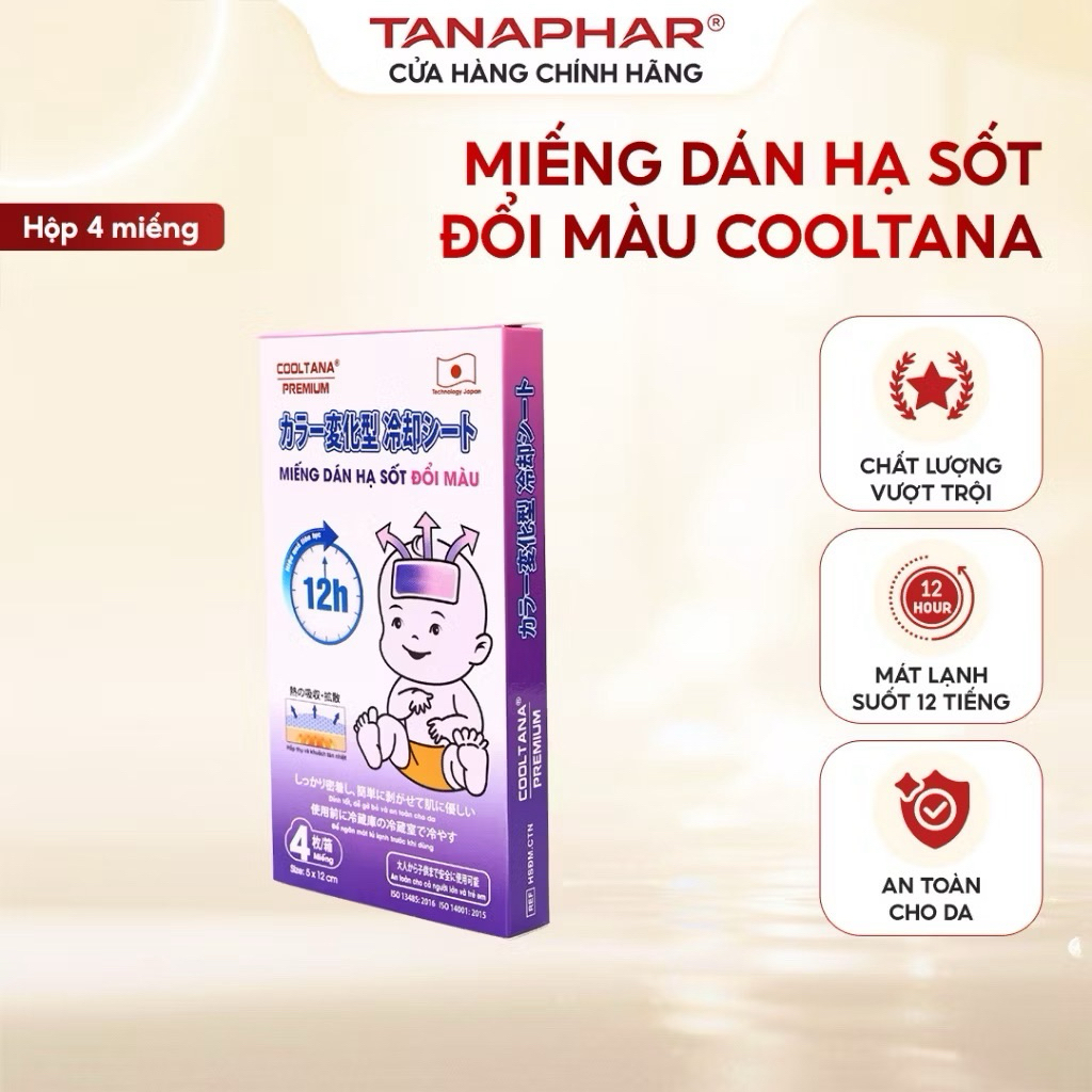 🔥 MIẾNG DÁN HẠ SỐT ĐỔI MÀU COOLTANA PREMIUM – CÔNG NGHỆ NHẬT BẢN 🔥👉 Giúp bé hạ sốt nhanh, an toàn và dễ chịu – đổi màu theo nhiệt độ để mẹ dễ theo dõi tình trạng!🌡 TÍNH NĂNG NỔI BẬT:✅ Đổi màu thông minh: Màu sắc thay đổi theo nhiệt độ cơ thể, giúp nhận biết tình trạng sốt rõ ràng.✅ Hiệu quả lên đến 12 tiếng – giúp bé ngủ ngon suốt đêm.✅ Công nghệ Nhật Bản – chất gel an toàn, mát lạnh tức thì.✅ Dán chắc, không rơi khi bé xoay đầu.✅ Không chứa menthol, không gây kích ứng da nhạy cảm.👶 Phù hợp cho:Trẻ em bị sốt, nóng, mệt mỏiNgười lớn cần làm mát, thư giãnCó thể dùng khi học tập, làm việc căng thẳng📦 Quy cách:1 hộp gồm 4 miếngKích thước: 5 x 12 cmThời gian sử dụng: 12 giờ/lần💡 HƯỚNG DẪN SỬ DỤNG:1️⃣ Làm sạch và lau khô vùng da cần dán.2️⃣ Gỡ lớp phim bảo vệ, dán trực tiếp lên trán hoặc vùng nóng.3️⃣ Dán mới khi gel mất độ mát hoặc đổi màu hoàn toàn.💙 Thương hiệu: COOLTANA PREMIUM🇯🇵 Công nghệ Nhật Bản – Sản xuất đạt chuẩn ISO 13485:2016 & ISO 14001:2015📍 Phân phối chính hãng tại Nhà thuốc Giá Tốt#MiếngDánHạSốt #CooltanaPremium #HạSốtChoBé #MiếngDánĐổiMàu #NhàThuốcGiáTốt #ChămSócTrẻEm #Sốt #HạSốtNhanh #HàngNhậtChí