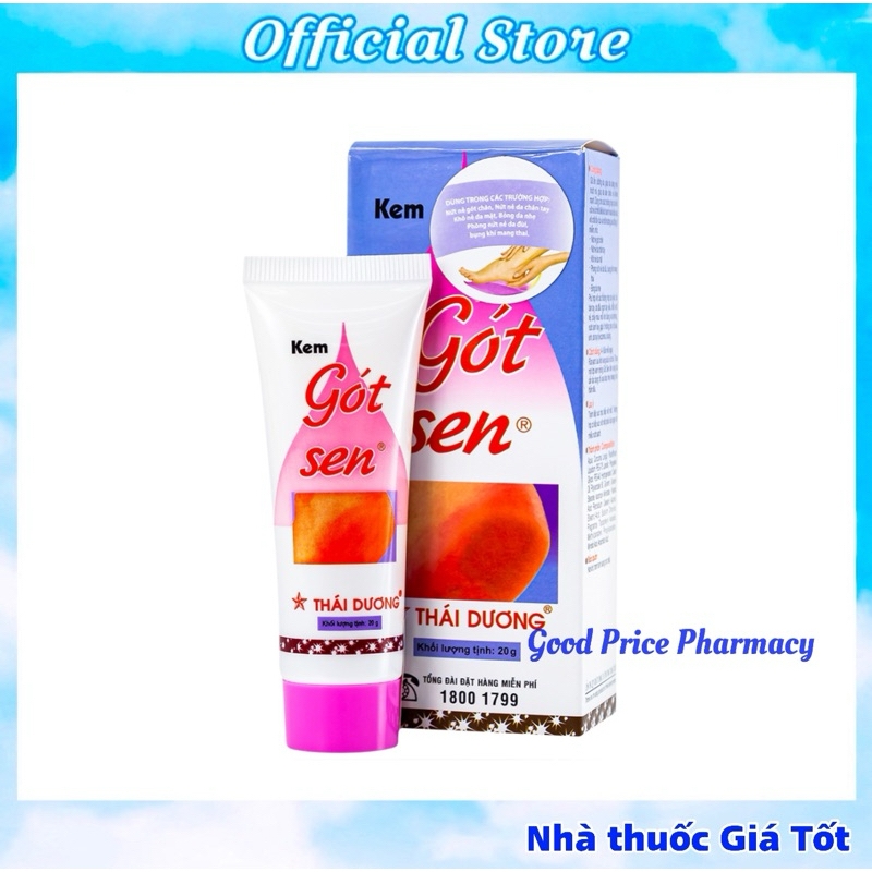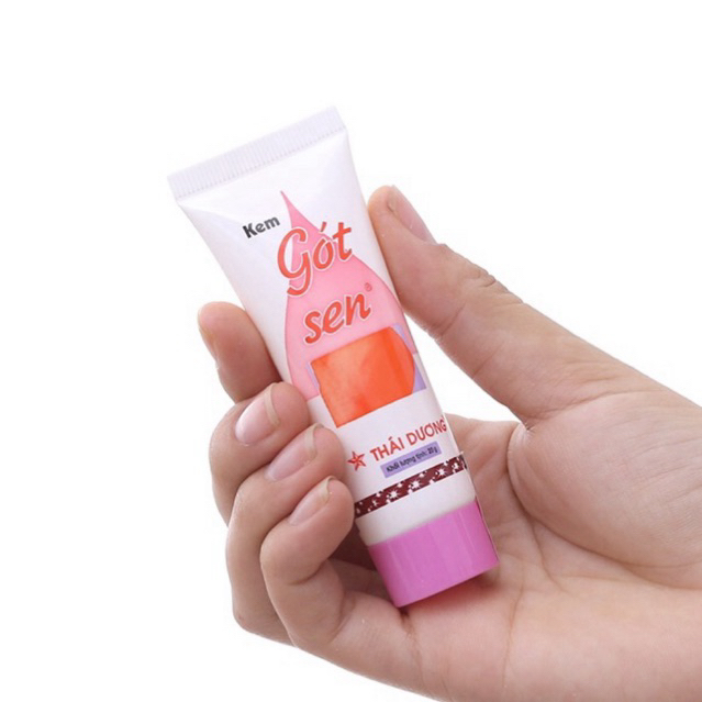 Gót Sen ngừa nứt nẻ gót chânKEM GÓT SEN - CTY CP Sao Thái Dương🍒Công dụng Kem Gót Sen🌿 Dùng trong các trường hợp da khô nứt nẻ do thời tiết khô hanh hoặc tiếp xúc với các chất tẩy rửa và môi trường lao động ô nhiễm dẫn đến bị nứt nẻ gót chân, nứt nẻ da chân tay, khô nẻ da mặt.🌿 Phòng nứt nẻ da bụng và đùi khi mang thai.🌿 Phù hợp sử dụng với các trường hợp bị á sừng,eczema, da bàn tay, da đầu ngón tay yếu, dễ bị nứt nẻ, chảy máu mỗi khi dùng xà phòng, nước lạnh hay gặp ở những phụ nữ sau khi sinh.🍒Cách sử dụng kem Gót Sen🌿Thoa một lớp mỏng kem Gót Sen rồi xoa bóp nhẹ nhàng cho thấm đều lên vùng da cần tác dụng.🌿Trước khi lao động: Thoa đều một lớp kem Gót Sen lên vùng da sẽ phải tiếp xúc với bụi bẩn, đất cát... nhằm tạo một lớp ngăn cách tránh cho các bụi bẩn siêu nhỏ không bám chặt vào da, các vết nứt nẻ... và chúng sẽ dễ dàng rửa sạch hơn sau khi lao động xong.🌿Sau khi lao động xong: Rửa sạch da bằng nước sạch, thấm khô bằng khăn mềm rồi thoa đều một lớp kem lên vùng da cần tác dụng nhằm giữ ẩm cho da, tái tạo tế bào da, liền da, hồi sinh làn da.Lưu ý: Sản phẩm không phải là thuốc, không có tác dụng thay thế thuốc chữa bệnh