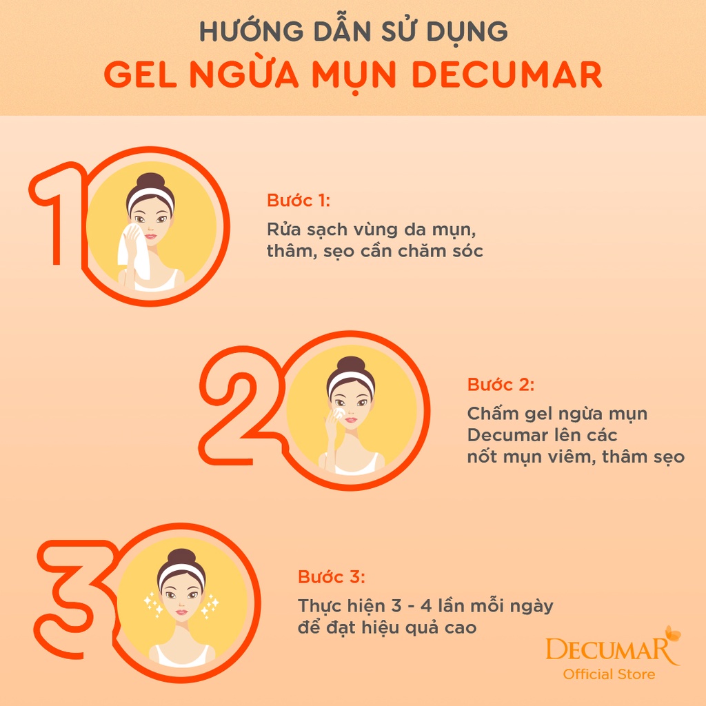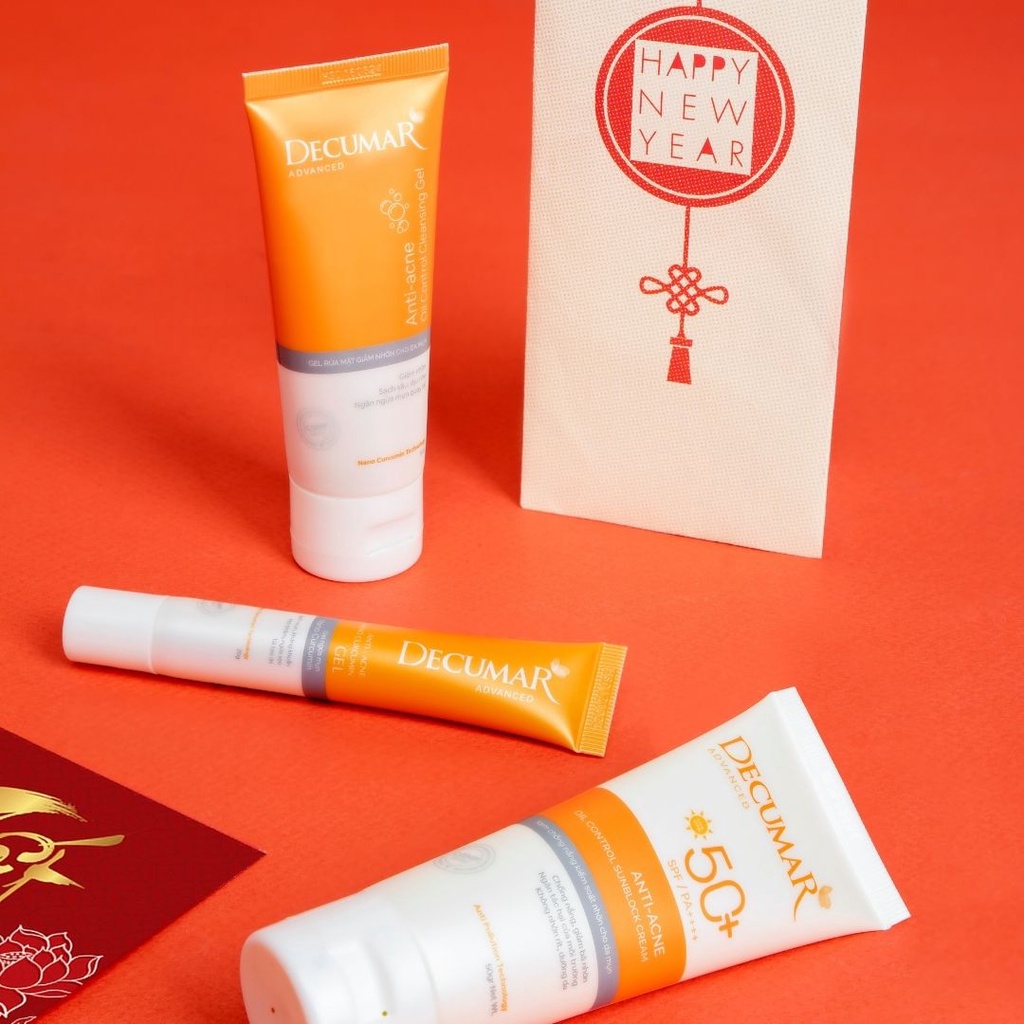 Gel ngừa mụn Decumar Advanced là phiên bản cải tiến của Decumar New 20grSản phẩm chứa siêu nghệ Nano kết hợp cùng tinh chất rau má Pháp lần đầu tiên có mặt tại Việt Nam mang đến hiệu quả giảm mẩn đỏ,giảm mụn vượt trội; đồng thời kích thích tái tạo da, mờ thâm ngừa sẹo nhanh chóng. Sản phẩm được thiết kế dạng tuýp nhỏ gọn, dễ dàng sử dụng1. Công dụngSạch mụn, giảm nhanh tình trạng mụn tấy đỏMờ thâm, ngừa sẹo sau mụn hiệu quảKiểm soát bã nhờnTái tạo và cung cấp độ ẩm cho da, giúp da luôn mịn màng, tươi tắn2. Thành phần chính -Nano Curcumin: được ứng dụng công nghệ Nano để tạo ra Nano Curcumin với kích thước phân tử siêu nhỏ giúp thẩm thấu sâu vào da gấp 7.500 lần so với nghệ thường, phát huy tối đa hiệu quả ngừa mụn. -Chiết xuất rau má Pháp: Sự lành tính cao và chứa nhiều thành phần có lợi cho da, rau má Pháp mang đến làm lành vết thương và giảm hình thành sẹo trên da.- Chiết xuất lá chanh sim: Kiểm soát tốt lượng dầu nhờn trên da.- Chiết xuất hành tây đỏ: Ngăn ngừa sẹo lõm và sẹo lồi- Chiết xuất lô hội: Giữ và cung cấp độ ẩm cho làn da để da luôn láng mịn3. Đối tượng sử dụngPhù hợp mọi đối tượng gặp vấn đề về mụn, thâm, sẹo do mụn (không dị ứng với nghệ)Độ tuổi sử dụng: Từ 12 tuổi trở lênLoại da phù hợp: Mọi loại da đặc biệt là nhạy cảm và da nhờn mụn4. Hướng dẫn sử dụng:Rửa sạch vùng da mụn, thâm, sẹo cần chăm sóc Chấm gel ngừa mụn Decumar Advanced lên các nốt mụn viêm, thâm sẹoThực hiện 3 - 4 lần mỗi ngày, có thể bôi để qua đêm và kiên trì trong vòng 2 tuần. Mỗi lần nên để 30 phút - 60 phút, sau đó rửa sạch lại mặtNgoài ra cần kiêng đồ ăn cay nóng và ngủ đủ giấc để hạn chế mụn mớiHạn sử dụng: 3 năm kể từ ngay sản xuất.Thông tin chi tiết xem trên bao bì sản phẩm