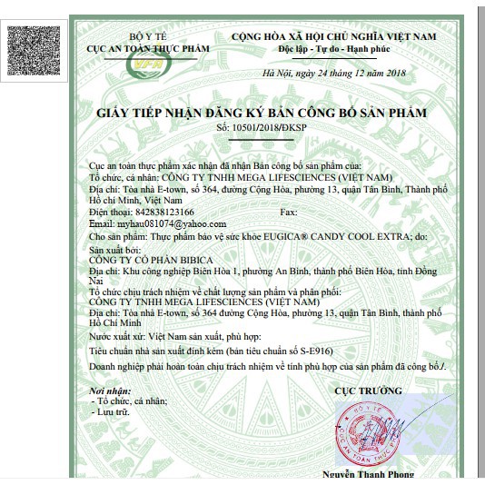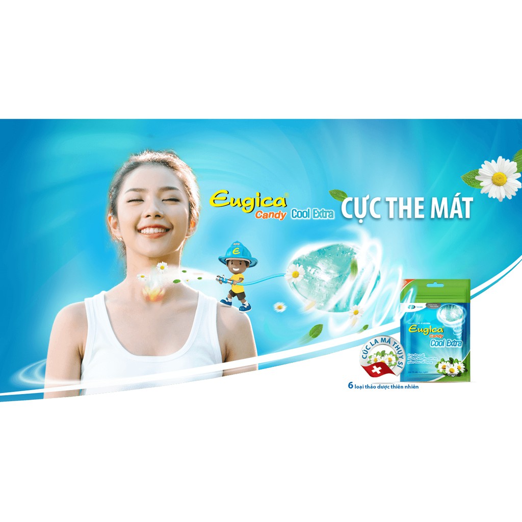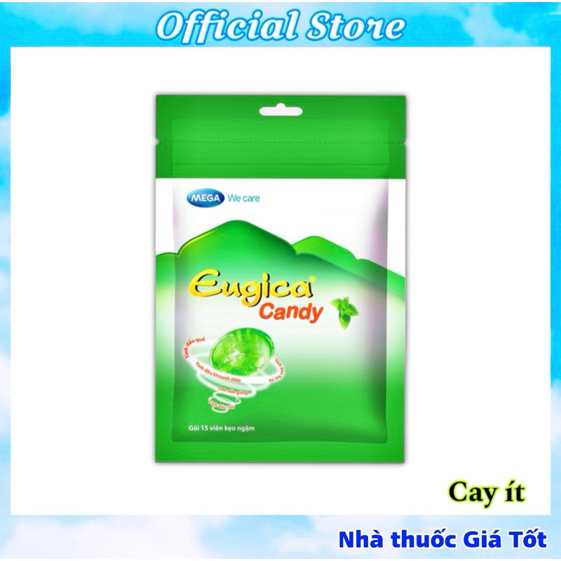 Thông tin sản phẩm:CÔNG DỤNG:Làm ấm và thông cổ, giúp ngăn ngừa và làm dịu cơn ho, giảm đau rát họng và khản tiếng.HÀM LƯỢNG TRONG 1 VIÊNTinh dầu bạc hà (Menthol): 9,65 mg. Chiết xuất hoa cúc (Chamomile flower): 6,675 mg. Tinh dầu quế (Cinamon): 1 mg. Tinh dầu khuynh diệp (Eucalyptol): 0,8 mg. Tinh dầu gừng (Zingiber): 0,6 mg. Tinh dầu tần (Coleus aromaticus): 0,5 mg.Phụ liệu: Đường RS, nha 42-75 (maltodextrin), hương bạc hà, màu thực phẩm Brilliant Blue.ĐỐI TƯỢNG SỬ DỤNG:Người lớn và trẻ em trên 6 tuổi.LIỀU DÙNG VÀ CÁCH DÙNG:Có thể ngậm kẹo Eugica candy nhiều lần trong ngày, mổi lần ngậm 1 viênTối đa 10 viên/ ngày.BẢO QUẢNNơi khô ráo, thoáng mát, tránh ánh nắng trực tiếpDẠNG TRÌNH BÀYGói 15 viênHẠN SỬ DỤNG:1.5 năm kể từ NSX. Sản phẩm bảo vệ sức khỏe không phải là thuốc, không có tác dụng thay thế thuốc chữa bệnh.#eugicacandy #eugica #candy