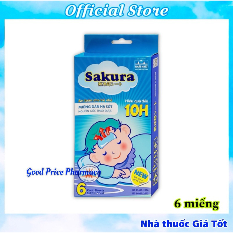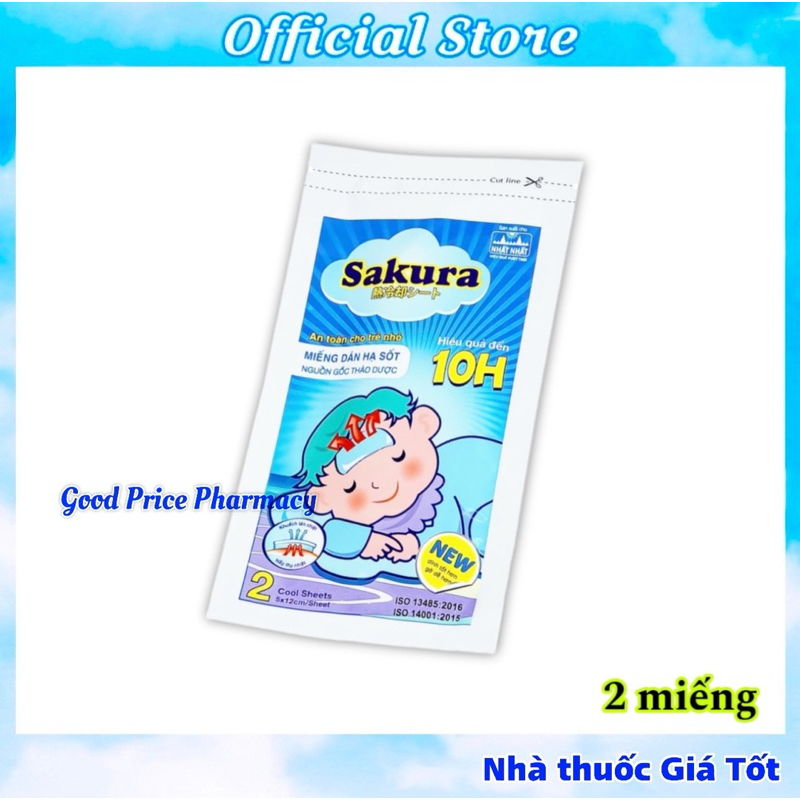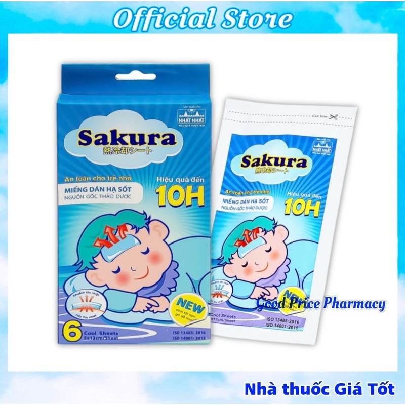 Miếng dán lạnh hạ sốt SAKURAMiếng dán hạ sốt trong thành phần có Hydrogel thân nước làm mát lạnh tự nhiên. Giúp hạ nhiệt, giảm sốt, giảm đau, say nắng theo cơ chế hấp thụ nhiệt từ cơ thể khuyếch tán ra ngoài.Miếng dán lạnh dùng được cho trẻ sơ sinh.THÀNH PHẦNMiếng dán hạ sốt Sakura có chứa: Aluminium glycinat, glycerin, natri polyacrylate, menthol, eucalytol, nước…Miếng dán hạ sốt Sakura được sản xuất theo Công nghệ và Nguyên liệu nhập khẩu từ Nhật Bản.CÁCH SỬ DỤNG - Gỡ tấm film ra khỏi miếng dán, dán mặt dính lên vùng da khô sạch nơi muốn làm mát hoặc giảm đau như: trán, bẹn, nách, vai, lưng, cơ bắp.- Có thể cắt nhỏ miếng dán lạnh theo kích thước cần dùng.- Muốn tăng công dụng của miếng dán hạ sốt, có thể dán nhiều miếng ở nhiều vị trí khác nhau cùng lúc.- Để tăng hiệu quả làm mát của miếng dán hạ sốt, cho nguyên túi chưa mở vào ngăn mát của tủ lạnh trước khi dùng.- Miếng dán có hiệu quả làm mát liên tục trong 10 tiếng.- Mỗi miếng dán lạnh chỉ sử dụng một lần. Khi mở túi, miếng dán lạnh phải được dùng ngay.Bảo quản: Nơi khô ráo thoáng mát, tránh ánh nắng.Quy cách: Hộp có 3 gói, mỗi gói 2 miếng dánNhà sản xuất: Tanaphar