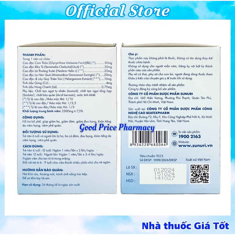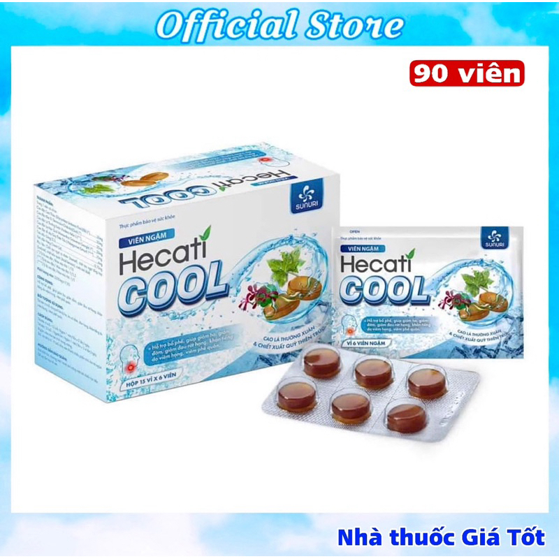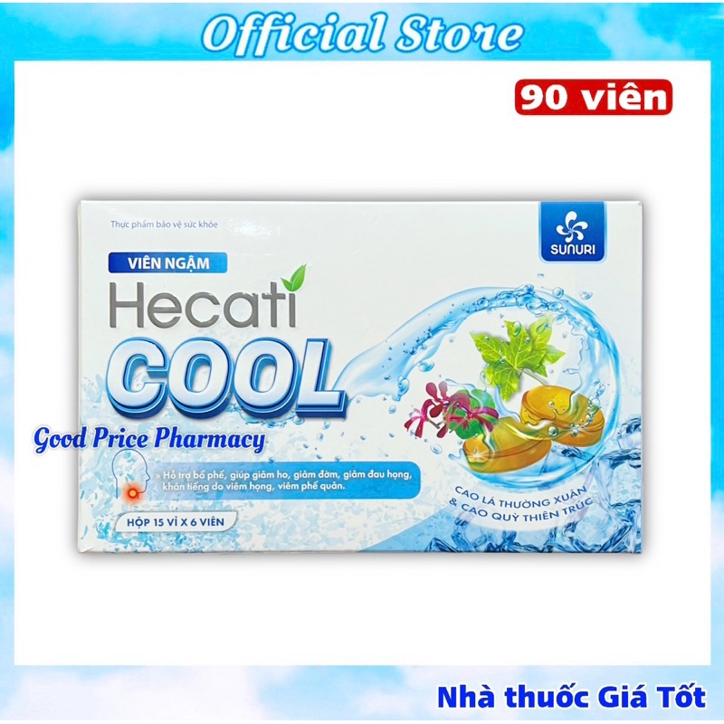 Nguyên Hộp Viên Ngậm Ho Không Đường Hecati Cool Hỗ Trợ Giảm Ho, Đờm, Đau Rát Họng, Khản Tiếng ( 90 Viên)