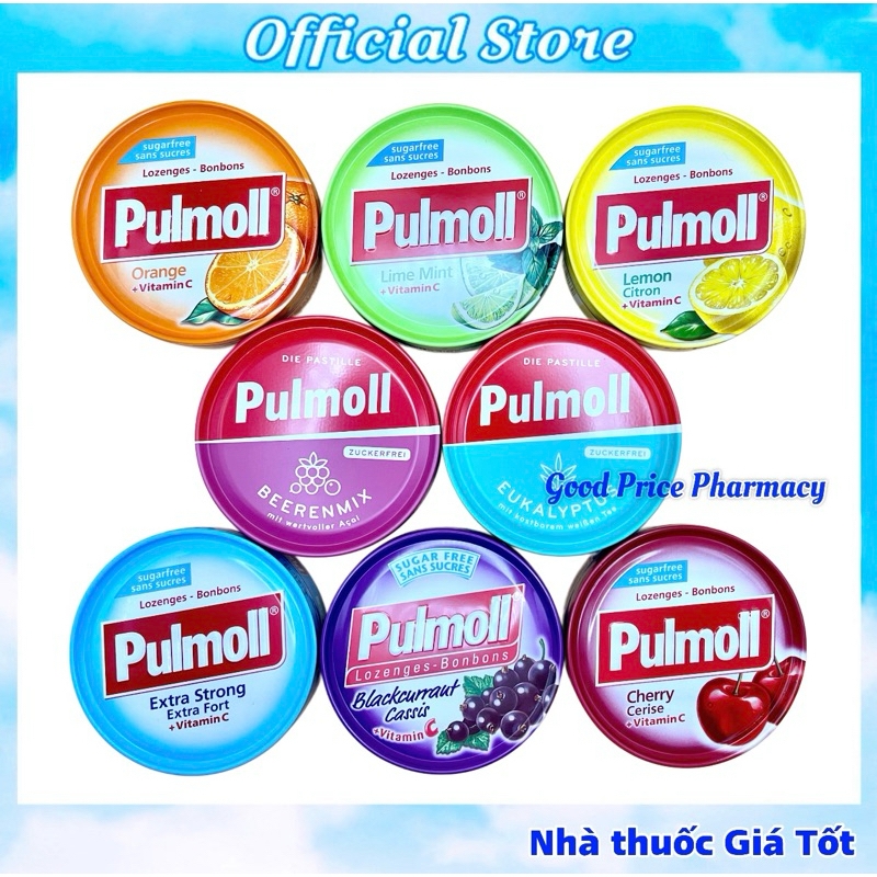 KẸO NGẬM HO KHÔNG ĐƯỜNGZuckerfrei Pulmoll Hộp 50gKẹo ngậm ho không đường Zuckerfrei PULMOLL nhập khẩu từ Đức được sản xuất từ những thành phần dược liệu chiết xuất từ tự nhiên, làm ấm đường hô hấp, hỗ trợ giảm ho khan, đau rát họng đem lại cảm giác khỏe khoắn và tinh thần phấn chấn hơn.Kẹo có nhiều mùi vị như Chanh muối, Bạc hà, Viết quất, Cherry với mùi thơm hấp dẫn, vị ngọt nhẹ nhàng, thiết kế hộp xinh xắn, trẻ trung, là thực phẩm bảo vệ sức khoẻ phù hợp với nhiều độ tuổi.THÀNH PHẦN KẸO PULMOLLIsomalt, maltitol syrup, nước, axit maclic, sorbitol syrup, vitamin C, chiết xuất thực vật, trái cây cô đặc, hương bạc hà…CÔNG DỤNG KẸO PULMOLLLàm ẩm đường hô hấp, giảm ho khan, đau rát họng, đem lại tinh thần khỏe khoắn và phấn chấn hơn.Đối tượng sử dụng: Dùng cho người lớn và trẻ em từ 6 tuổi trở lên.Cách sử dụng:Dùng trực tiếp, ngày ngậm từ 5 – 10 viên, mỗi lần ngậm 1 viên.Bảo quản: Bảo quản nơi khô ráo thoáng mát, tránh ánh nắng mặt trời, đậy kín nắp sau khi sử dụng.Quy cách đóng gói: 50g/hộpXuất xứ thương hiệu: ĐứcSản xuất tại: Đức#pulmoll #kẹo_pulmoll_đức #kẹo_ngậm_ho #rát_họng