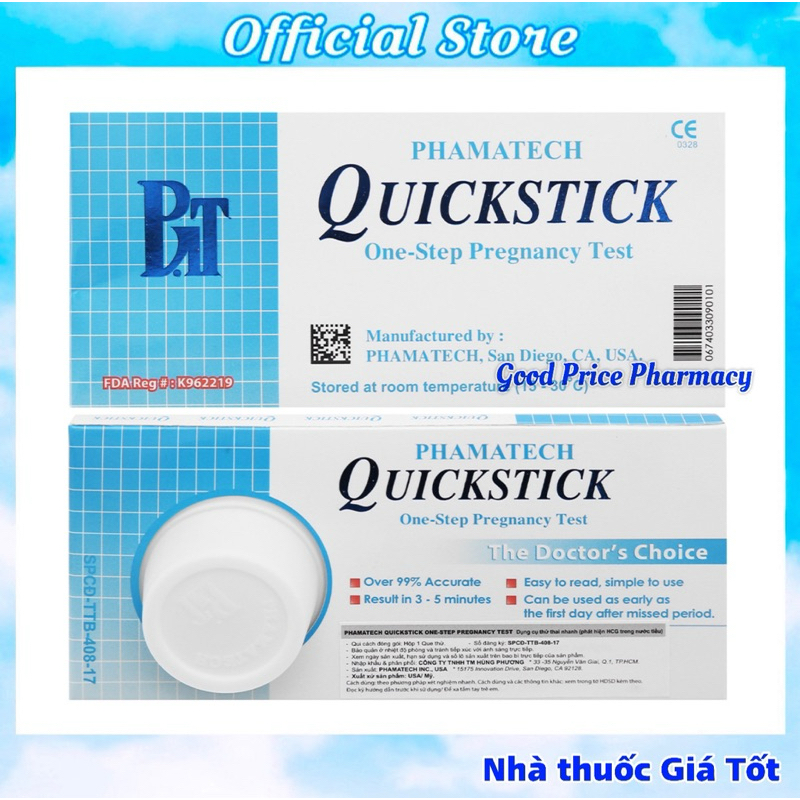 QuickStick là thương hiệu que thử thai đầu tiên có mặt trên thị trường Việt Nam. Đây là sản phẩm được Công ty PHAMATECH sản xuất tại Hoa Kỳ, do Công ty TNHH TM Hùng Phương độc quyền phân phối. Trải qua hơn 20 năm, từ năm 1993 đến nay, QuickStickluôn hoàn thành trách nhiệm thông báo “tin vui” sớm nhất và an toàn nhất cho người phụ nữ.QuickStick có thể phát hiện nồng độ HCG > = 25 mIU/ml (tương đương thai 7 ngày tuổi). Như vậy, chỉ sau 7 ngày giao hợp, người phụ nữ đang trong kế hoạch hoặc ngoài dự kiến có thể nhanh chóng phát hiện mình có thai hay không với độ tin cậy lên đến 99%.Tại sao bạn nên dùng que thử thai QuickStick:Tiện lợi: các chị em có thể mua que thử ở các nhà phân phối, đại lý, cửa hàng thuốc lớn.Kín đáo: Việc thử thai diễn ra tại nhà, các chị em có thể tự mình thử thai mà không cần đến bệnh viện làm các xét nghiệm rắc rối, phức tạp.Chính xác: So với các sản phẩm que thử thai khác, QuickStick có độ tin cậy lên đến 99% (que thử thai bình thường khoảng 97%).Nhanh chóng, độ nhạy cao: sau 7 ngày giao hợp, người phụ nữ đang trong kế hoạch hoặc ngoài dự kiến có thể nhanh chóng phát hiện mình có thai hay không.Hạn sử dụng lên đến 3 nămTiết kiệm chi phí: Phương pháp này tiết kiệm chi phí hơn so với các phương pháp khác, vì giá sản phẩm QuickStick dao động từ 17,000 đến 20,000 tùy vào giá bán của mỗi nhà thuốc, đại lí.QuickStick hiện là que thử thai được dùng phổ biến nhất ở Việt Nam, đặc biệt được tin dùng trong các phòng khám, bệnh viện phụ sản, các cơ sở kế hoạch hóa gia đình.Là sản phẩm duy nhất được đưa vào chương trình Dân Số Kế Hoạch Hóa Gia Đình 5 năm liền.
