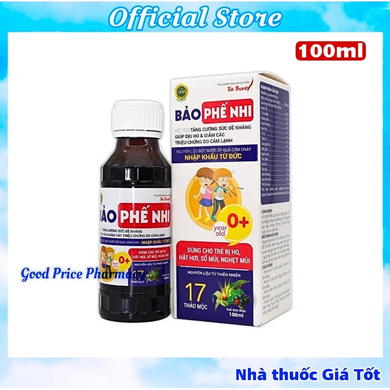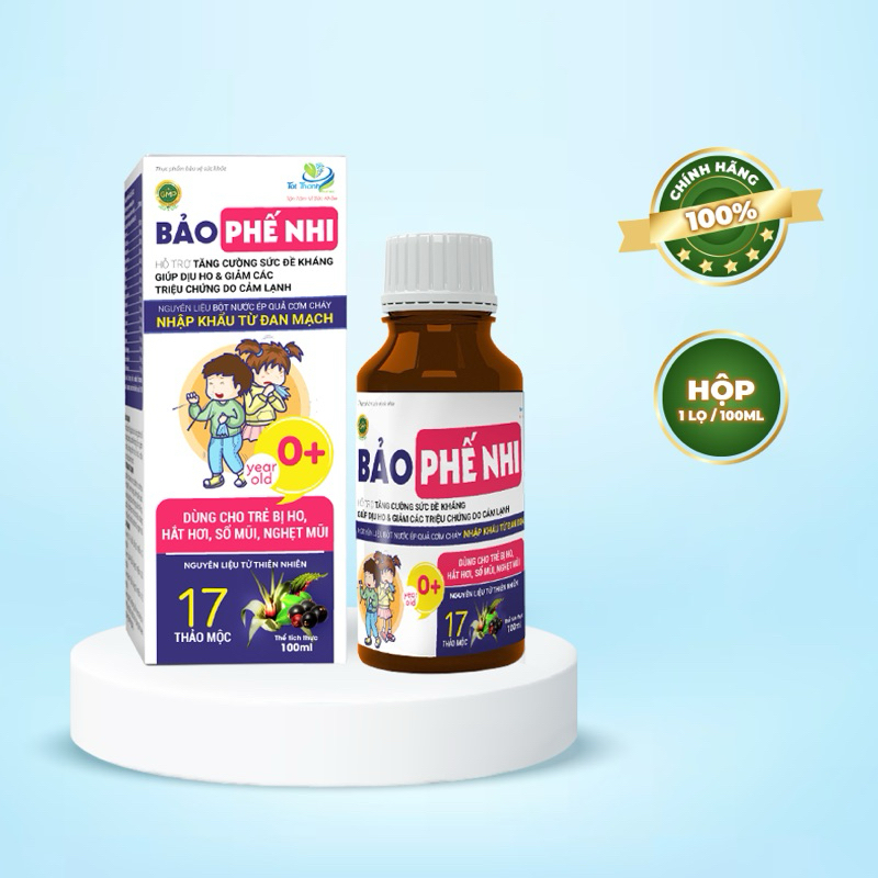 Siro Ho Bảo Phế Nhi hỗ trợ giảm các triệu chứng hắt hơi, sổ mũi, chảy nước mũi do cảm lạnh, hỗ trợ bổ phế, giúp dịu ho, loãng đờm, hỗ trợ tăng cường sức đề kháng.Nguyên liệu bột nước ép quả cơm cháy nhập khẩu từ Đan Mạch✅ Thành phần:Elderberry powderd (Bột nước ép quả cơm cháy)…. 300mgCao lỏng hỗn hợp chiết xuất từ;– Bạch chỉ 10g– Tỳ bà diệp 9g– Hương phụ. 8g– Xuyên khung 8g– Bách bộ 4,5g– Tô tử 4,5g– Trần bì 4,5g– Tang bạch bì 3,0g– Kinh giới 3,0g– Mạch môn 2,4g– Cát cách 2,4g– Quế chi 2,0g– Cát căn 1,6g– Sinh khương 1,6g– Cam thảo bắc 1,6g– Thổ bôi mẫu. 1,2gPhụ liệu: Đường kính, sorbitol, fructose, nipazil, nipazol, nước tinh khiết vừa đủ 100ml.✅ Công dụngHỗ trợ bổ phế, giúp dịu ho, loãng đờm, hỗ trợ tăng cường sức đề kháng, hỗ trợ giảm các triệu chứng hắt hơi, sổ mũi, chảy nước mũi do cảm lạnh.Sản phẩm của CÔNG TY CỔ PHẦN DƯỢC PHẨM TẤT THÀNH❌ LƯU Ý: Sản phẩm này không phải là thuốc và không có tác dụng thay thế thuốc chữa bệnhSố quảng cáo: 2390/2021/XNQC-ATTP#bophe #hobophe #bophechobe #siroho #siro #tre #baby #baophenhi #hathoi #somui #tatthanh