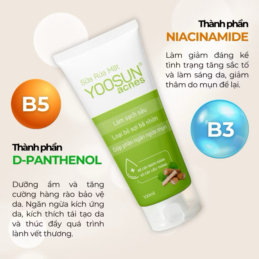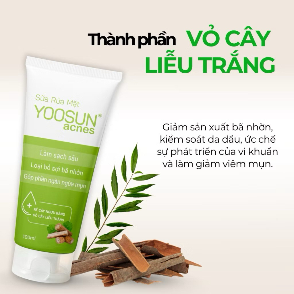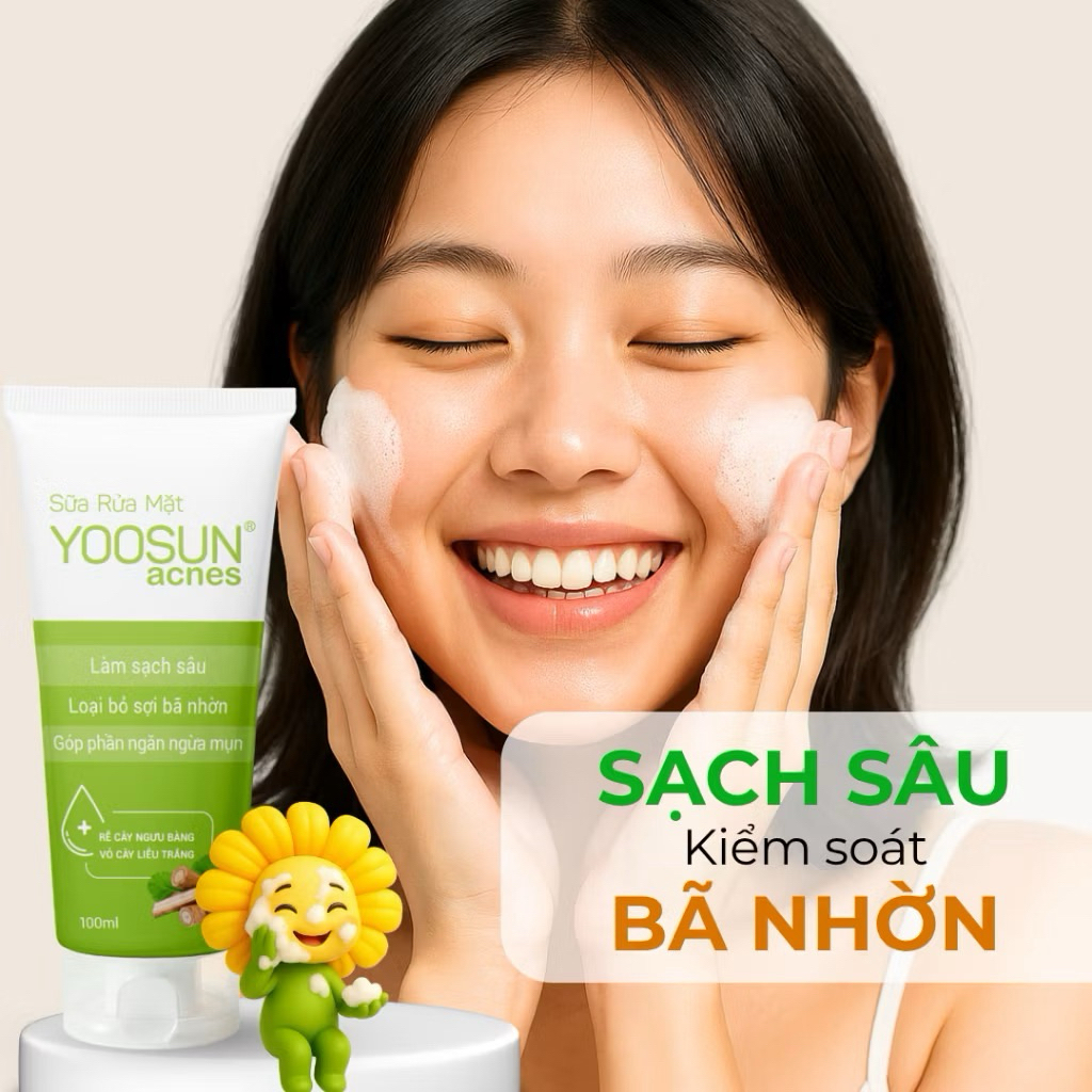 Sữa Rửa Mặt Yoosun Acnes Tuýp 100ml – Làm Sạch Sâu, Giảm Nhờn, Ngừa Mụn📌 Mô tả sản phẩm:Sữa rửa mặt Yoosun Acnes với công thức từ rễ cây ngưu bàng và vỏ cây liễu trắng, giúp:Làm sạch sâu bụi bẩn, dầu thừa và bã nhờn trên da.Loại bỏ sợi bã nhờn, cho da thông thoáng.Góp phần ngăn ngừa mụn và hạn chế tình trạng bí tắc lỗ chân lông.Phù hợp cho da dầu, da mụn và da hỗn hợp.Sản phẩm dịu nhẹ, dễ tạo bọt, giúp da sạch thoáng nhưng vẫn giữ được độ ẩm tự nhiên.📦 Thông tin chi tiết:Thương hiệu: YoosunDung tích: 100mlXuất xứ: Việt NamLoại da phù hợp: Da dầu, da mụn, da hỗn hợpThành phần chính: Rễ cây ngưu bàng, vỏ cây liễu trắng, chất làm sạch dịu nhẹCông dụng: Làm sạch – Giảm nhờn – Ngăn ngừa mụn✅ Hướng dẫn sử dụng:Làm ướt mặt.Lấy một lượng nhỏ sữa rửa mặt, tạo bọt với nước.Massage nhẹ nhàng khắp mặt trong 1–2 phút.Rửa sạch với nước mát.Sử dụng ngày 2 lần sáng và tối để đạt hiệu quả tốt nhất.⚠️ Lưu ý:Tránh tiếp xúc trực tiếp với mắt.Ngưng sử dụng nếu da có dấu hiệu kích ứng.Bảo quản nơi khô ráo, thoáng mát, tránh ánh nắng trực tiếp.