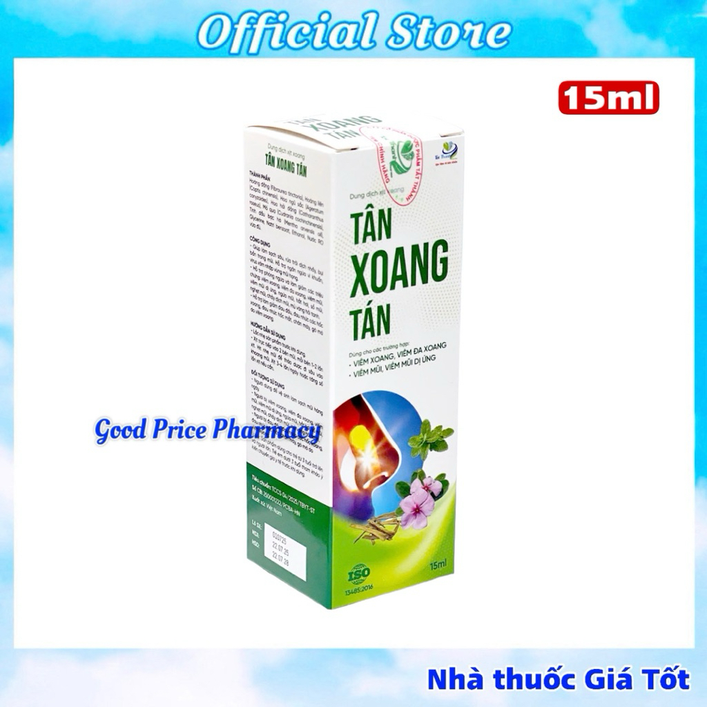 Thành phần nổi bật:🌿 Chiết xuất thảo dược tự nhiên (bạc hà, xuyên tâm liên, hoa ngũ sắc,…)🌿 Không chứa corticoid, an toàn khi sử dụngCông dụng:Làm thông thoáng đường mũi, giảm nghẹt mũi khó chịuHỗ trợ làm giảm viêm xoang, viêm mũi dị ứngHỗ trợ phục hồi niêm mạc mũi, giảm tái phátĐối tượng sử dụng:👉 Người bị viêm xoang, viêm mũi dị ứng, viêm đa xoang👉 Người thường xuyên bị nghẹt mũi, chảy dịch mũi do thời tiết, môi trườngHướng dẫn sử dụng:Lắc đều trước khi dùng.Xịt trực tiếp vào hốc mũi (2–3 lần/ngày).Đọc kỹ hướng dẫn sử dụng trước khi dùng.Quy cách đóng gói: Chai xịt 15mlXuất xứ: Việt Nam