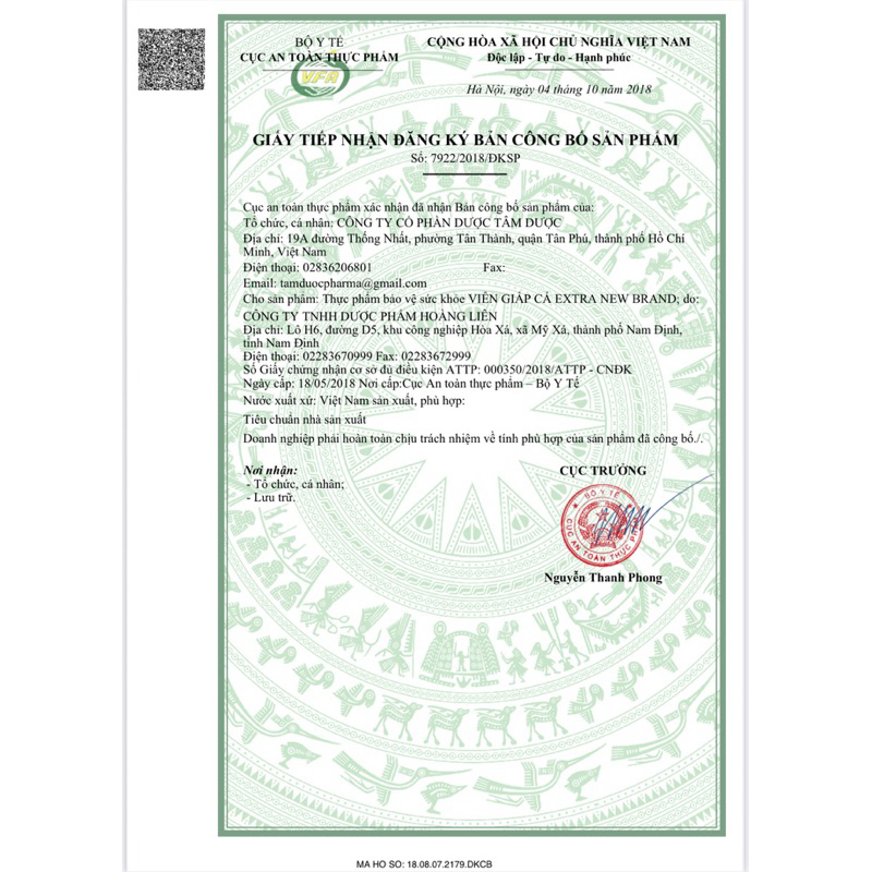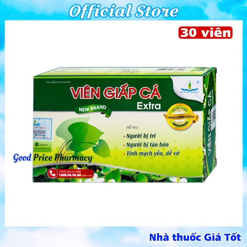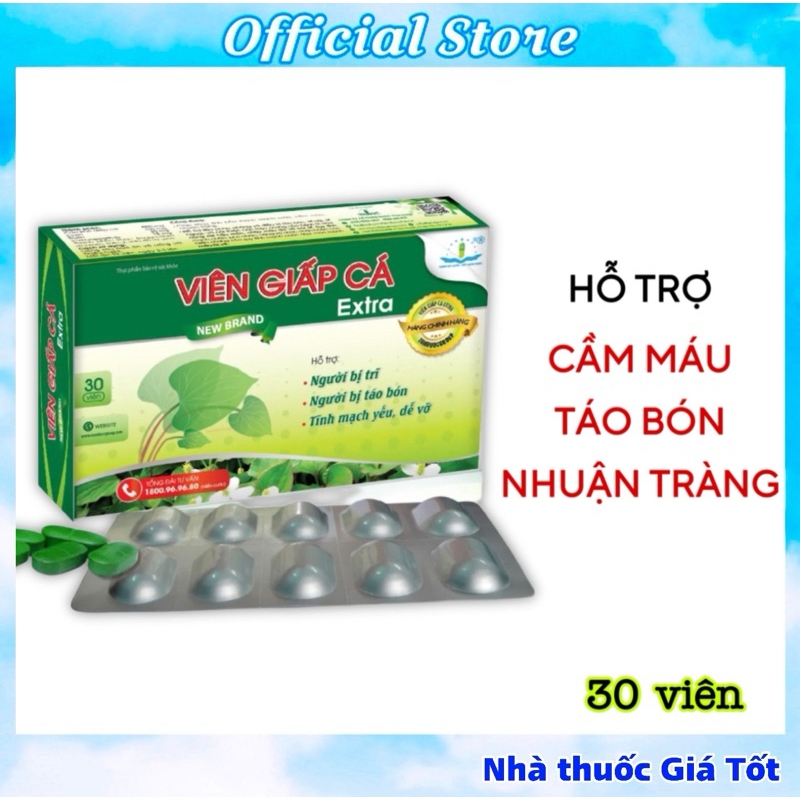 Viên Giấp Cá Extra là sản phẩm thực phẩm chức năng của Công ty Cổ phần Dược Tâm Dược, hỗ trợ điều trị bệnh trĩ, táo bón và suy giãn tĩnh mạch. Sản phẩm được bào chế từ các thành phần thảo dược thiên nhiên, an toàn cho người sử dụng. 🧪 Thành phần chính • Cao khô diếp cá (550 mg) • Inulin (100 mg) • Rutin (20 mg) • Immunepath-IP (15 mg)🎯 Công dụng • Hỗ trợ tăng cường tính bền vững của mạch máu, bảo vệ hệ tĩnh mạch. • Giúp nhuận tràng, giảm táo bón. • Hỗ trợ giảm các triệu chứng chảy máu, sa búi trĩ do bệnh trĩ. 👥 Đối tượng sử dụng • Người lớn và trẻ em trên 4 tuổi bị táo bón, trĩ nội hoặc trĩ ngoại cấp độ 1 và 2. • Người có biểu hiện chảy máu trĩ, sa búi trĩ. • Người cần phòng ngừa táo bón và bệnh trĩ. 💊 Cách dùng • Uống sau bữa ăn với nhiều nước. • Liều dùng: 2 viên mỗi lần, ngày uống 2–3 lần. 📦 Quy cách đóng gói • Hộp 30 viên nén (3 vỉ x 10 viên)❌ LƯU Ý: Sản phẩm này không phải là thuốc và không có tác dụng thay thế thuốc chữa bệnh