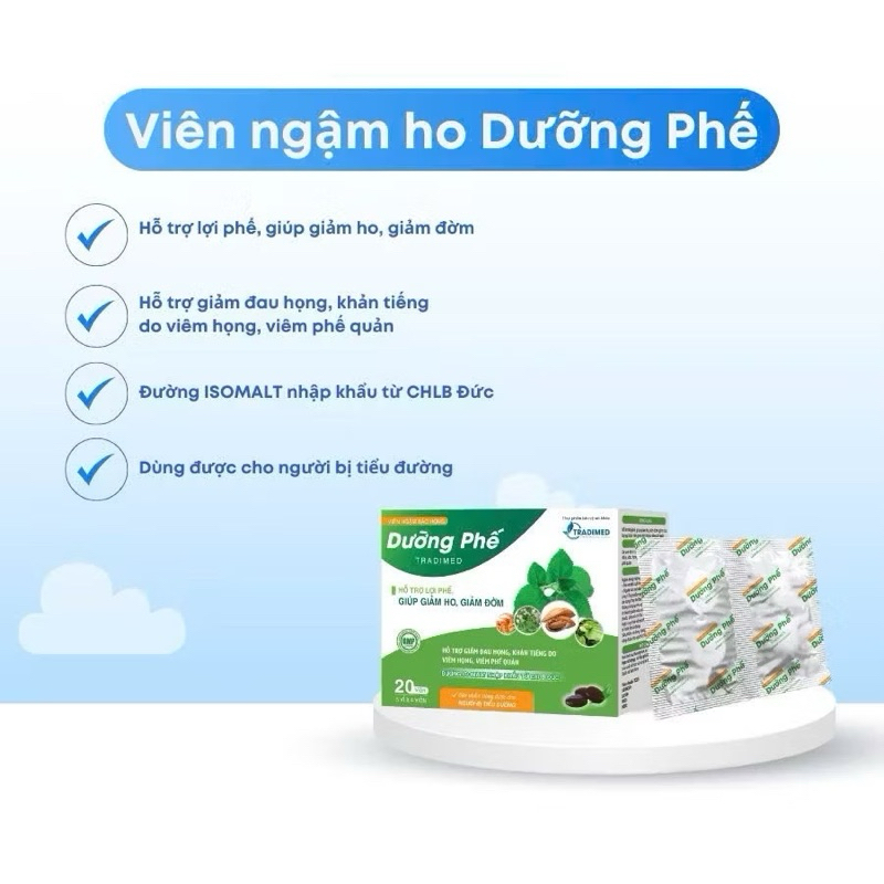 Viên Ngậm Bảo Họng Dưỡng Phế Không Đường Tradimed Hộp 20 Viên