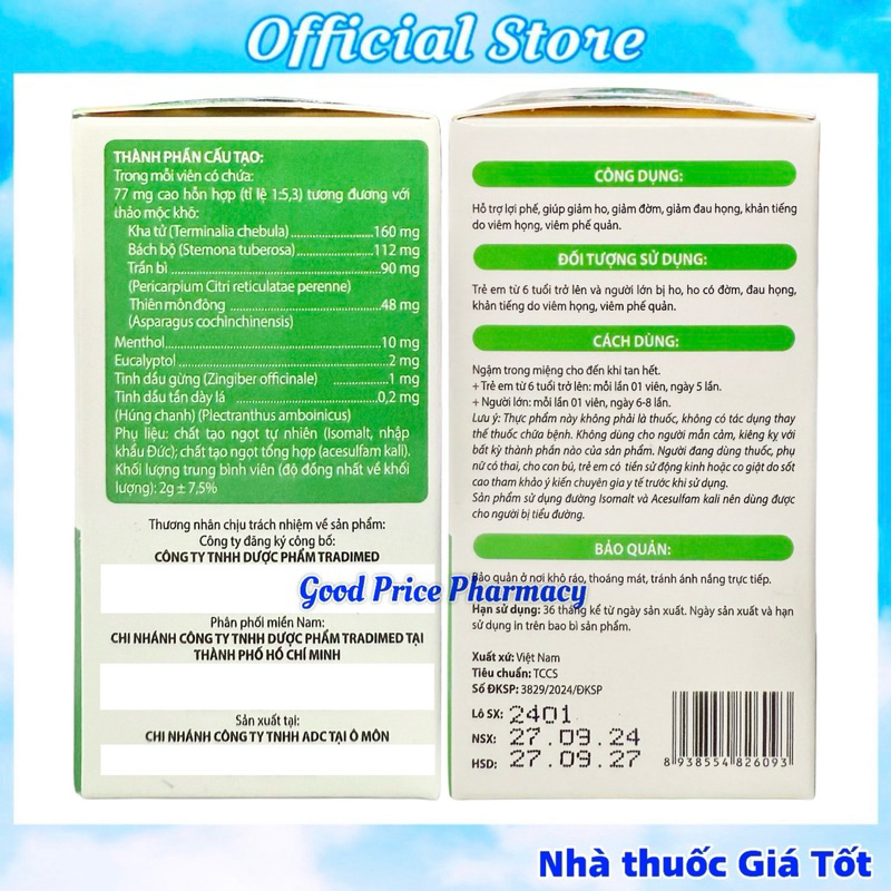Viên Ngậm Bảo Họng Dưỡng Phế Tradimed Hộp 20 Viên