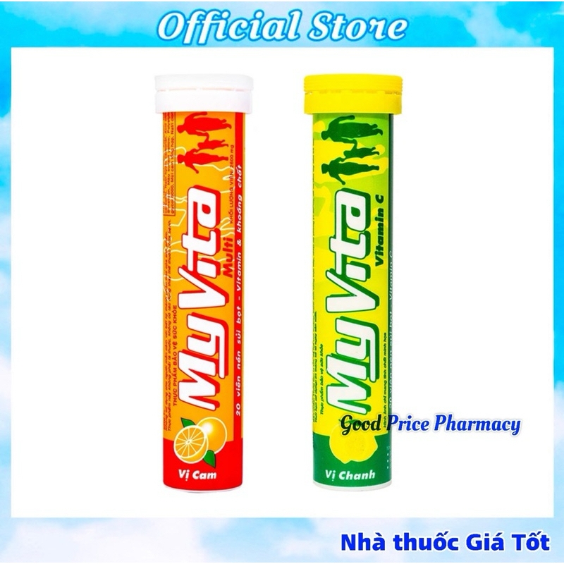 👉 Viên sủi bổ sung Vitamin C Myvita vị Cam có tác dụng bổ sung Vitamin C, giúp cho cơ thể gia tăng sức đề kháng chống lại các bệnh nhiễm trùng và stress. Bổ sung vitamin cần thiết hằng ngày cho trẻ đang tăng trưởng, phụ nữ có thai và cho con bú, người lớn và thiếu niên, nhất là khi chế độ ăn thiếu cân bằng dinh dưỡng.👉 Sản phẩm giúp hồi phục sức khỏe cho người dưỡng bệnh, sau phẫu thuật, chống căng thẳng tinh thần, trí óc và thể lực. Phối hợp với thuốc kháng sinh trong điều trị các bệnh nhiễm trùng, bệnh cúm, cảm lạnh, viêm nướu răng (scorbut), chảy máu lợi, chứng hôi miệng.✅ Thành phần của viên sủi MyVitaVitamin C: 60 mgVitamin B1: 1,4 mgVitamin B2: 1,6 mgVitamin B5: 6 mgVitamin B6: 2 mgVitamin B8: 0,15 mgVitamin B9: 0,2 mgVitamin B12: 4 mcgVitamin E: 10 IUVitamin PP: 18 mgCalci: 28 mgKẽm: 1,5 mgĐồng: 0,4 mgMagnesi: 10 mgPhospho: 5 mgChất phụ gia vừa đủ 1 viên nén sủi bọt.✅ Công dụng của viên sủi MyVitaMyVita Cam với thành phần công thức vượt trội gồm nhiều Vitamin và khoáng chất giúp cung cấp năng lượng tối ưu, tăng cường sức đề kháng cho cơ thể. Với hương vị cam tự nhiên cho bạn tinh thần sảng khoái, sẵn sàng giúp bạn lấy lại phong độ đỉnh cao.✅ Liều dùng & Cách dùng- Hòa tan 1 viên trong 200ml nước chín.- Người lớn: Mỗi lần uống 1 viên, ngày uống 2 lần.- Trẻ em trên 2 tuổi: Mỗi lần uống 1/2 viên, ngày uống 2 lần.- Tác dụng phụChưa có thông tin về tác dụng phụ của sản phẩm.✅ Lưu ý- Sản phẩm này không phải là thuốc và không có tác dụng thay thế thuốc chữa bệnh.- Đọc kỹ hướng dẫn sử dụng trước khi dùng.- Bảo quản nơi khô ráo, thoáng mát, nhiệt độ dưới 30 độ C, tránh ánh nắng trực tiếp từ mặt trời.- Để xa tầm tay trẻ em.✅ Quy cách: Tuýp 20 viên- Nhà sản xuất: Spm- Nước sản xuất: Việt Nam- HSD: 36 tháng kể từ ngày sản xuất.- Ngày sản xuất và hạn sử dụng: in dưới đáy tuýp.