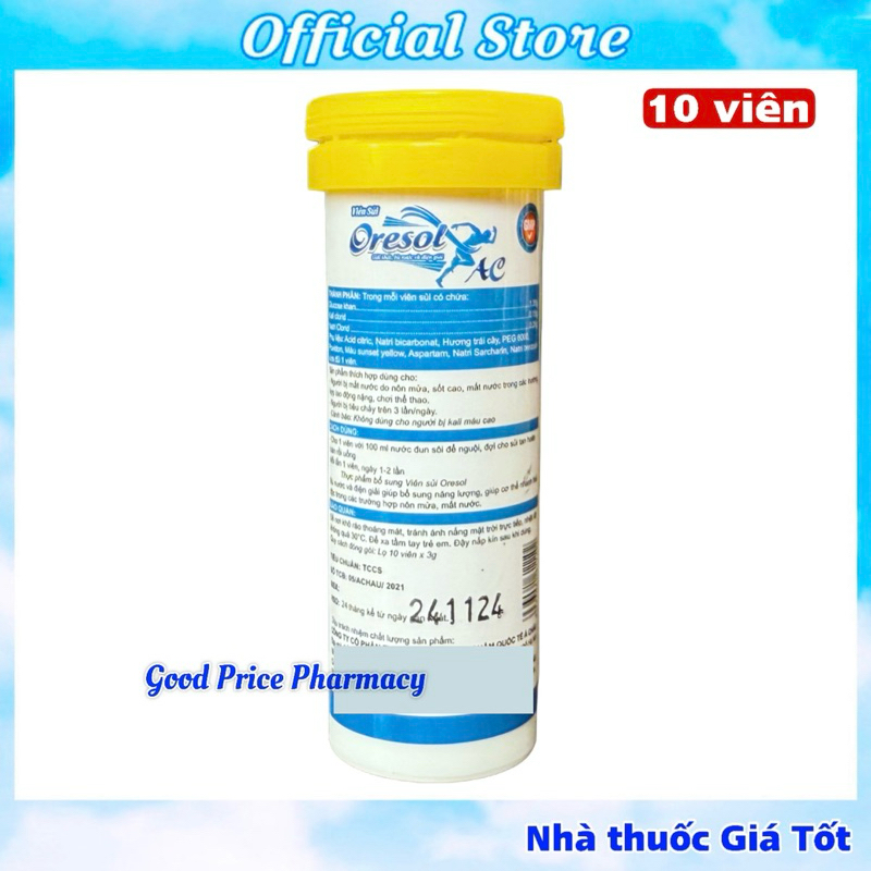 Viên Sủi Oresol Medy Hương Chanh Bổ Sung Điện Giải Cho Cơ Thể Tuýp 10 Viên✅ THÀNH PHẦN: Trong 1 viên:Glucose : 1350mgKali clorid : 270mgNatri Clorid : 150mgSaccharin : 25mgVitamin B1 : 2mgPhụ liệu: chất điều chỉnh acid (acid citric, natri bicarbonate), chất bảo quản (natri benzoate), hương chanh tổng hợp.✅ CÁCH DÙNG:Pha 1 viên với 150 - 200ml nước sôi để nguội. Đợi viên sủi tan hoàn toàn và thưởng thức. Dùng theo nhu cầu. ✅ ĐỐI TƯỢNG SỬ DỤNG:Dùng để bù nước, điện giải trong các trường hợp mất nước: chơi thể thao, luyện tập nặng nhọc, vận động viên, làm việc lâu trong môi trường nắng nóng, môi trường khắc nghiệt, người đi du lịch dưới trời nắng,...✅ BẢO QUẢN:Bảo quản nơi khô ráo, thoáng mát, tránh ánh nắng mặt trời chiếu trực tiếp. Để xa tầm tay trẻ em.Khối lượng viên: 4g ≤ 7,5%❌ Lưu ý: Không dùng cho người mẫn cảm với bất kỳ thành phần nào của sản phẩm.Sản phẩm này không phải là thuốc và không có tác dụng thay thế thuốc chữa bệnhTiêu chuẩn: TCCSSố TCB: 01/MEDYPHARM/2023