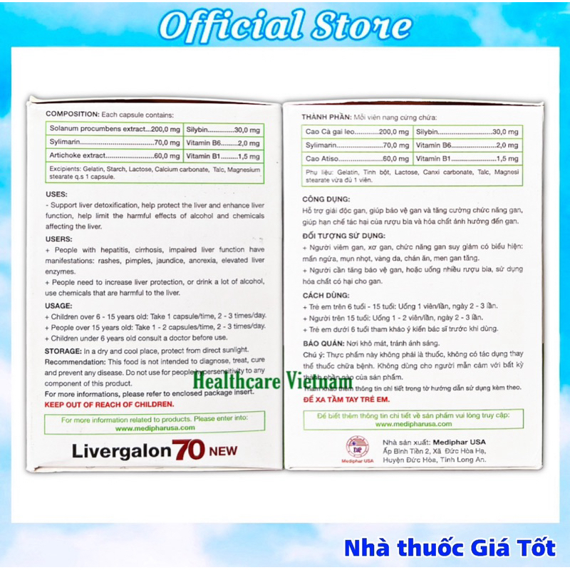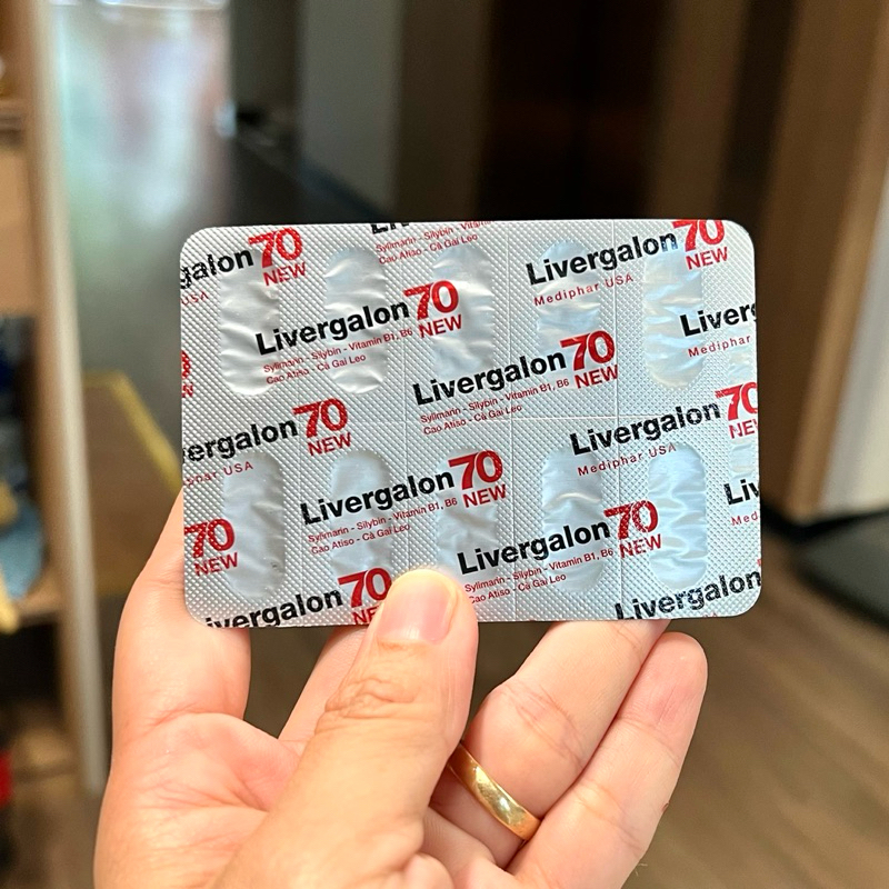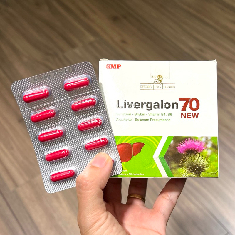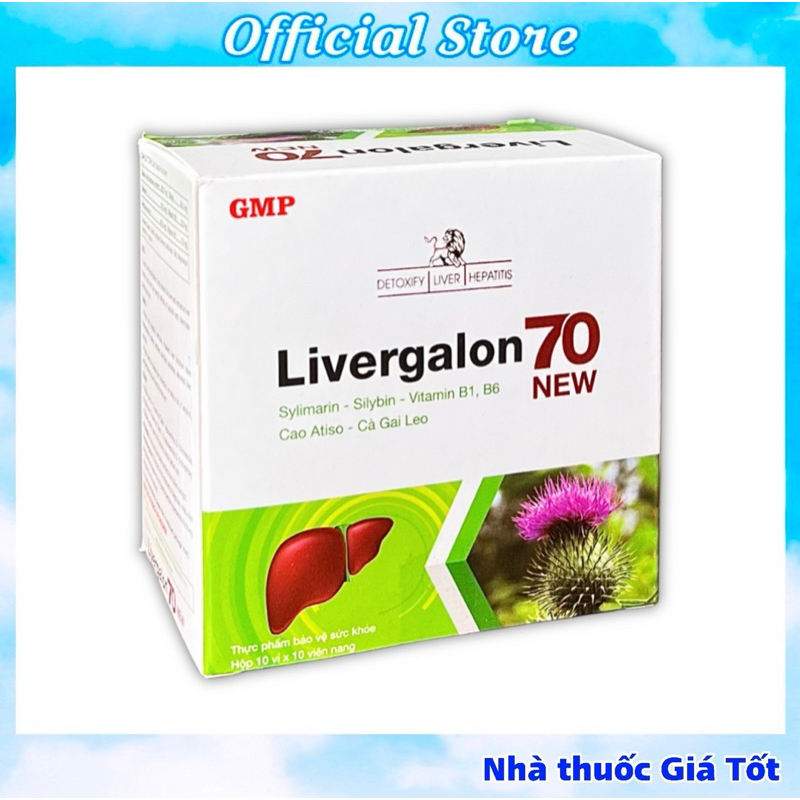 Livergalon 70 viên uống hỗ trợ gan, bảo vệ gan, tăng cường chức năng gan - Hộp 100 Viên✅ THÀNH PHẦN: Mỗi viên nang cứng chứa:Cao cà gai leo : 200mgSilybin : 30mgSylimarin : 70 mgCao atiso: 60mgVitamin B6 : 2mgVitamin B1: 1,5mgPhụ liệu: Gelatin, Tinh bột, Lactose, Canxi carbonate, Talc, Magnesi stearate vừa đủ 1 viên.