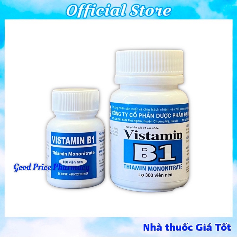 VITAMIN B1 - Bổ sung Vitamin B1 cho cơ thể, hỗ trợ cải thiện tình trạng thiếu vitamin Dược Đại Uy [Chính hãng]Quy cách: Lọ 100 viên nén; lọ 300 viên nén; lọ 2000 viên nén⭐ Hỗ trợ bổ sung vitamin B1 ⭐👉 Thành phần Vistamin B1: - Vitamin B1 (Thiamin Mononitrate) 2.5mg - Phụ liệu: Magnesi stearate, tinh bột vđ 1 viên🍀 Công dụng: Bổ sung vitamin B1 cho cơ thể, hỗ trợ cải thiện tình trạng thiếu hụt vitamin B1 nhóm B1🙋 Đối tượng sử dụng: Dùng cho người lớn và trẻ em trên 7 tuổi✍️ Hướng dẫn sử dụng: - Trẻ trên 7 tuổi: Ngày uống 1 lần, mỗi lần 1 - 2 viên - Người lớn: Ngày uống 1 lần, mỗi lần 2 - 4 viên❌ Chú ý: Sản phẩm này không phải là thuốc, không có tác dụng thay thế thuốc chữa bệnh ❌⭐️ Shop cam kết hàng chính hãng của Công ty Dược phẩm Đại Uy, khi nhận hàng khách kiểm tra thoải mái, nếu phát hiện hàng giả, hàng kém chất lượng toàn bộ trách nhiệm sẽ thuộc về shop ⭐️⚫️ NSX và HSD: Ghi trên bao bì sản phẩm.⚫️ Sản phẩm đến từ Thương hiệu Dược phẩm Đại Uy⚫️ Bảo quản: Nơi khô ráo, thoáng mát, tránh ánh sáng trực tiếp.#vistaminb1 #vitaminb1 #vitaminb1daiuy #vistaminb1daiuy #thiamin#b1 #bosungvitamin #bosungvitaminb1#daiuy #duocdaiuy #duocphamdaiuy #hotrosuckhoe #thucphamchucnang