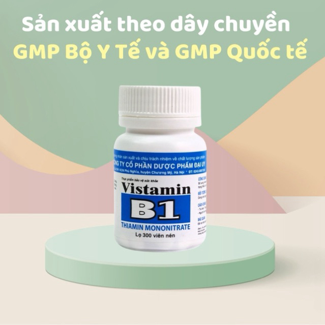 🚫Hãy chú ý mua sản phẩm chính hãng, tránh mua phải hàng giả hàng nhái trôi nổi trên thị trường!THÔNG TIN CHUNGĐược Bộ Y Tế cấp phép sản xuấtSản xuất theo dây chuyền đạt chuẩn GMP Bộ Y Tế và GMP Quốc tếSản xuất và phân phối: CÔNG TY CỔ PHẦN DƯỢC PHẨM ĐẠI UYTHÔNG TIN SẢN PHẨMVistamin B1 - Thiamin Mononitrate Tiêu chuẩn: 10/2020/Đại Uy Số ĐKSP: 4649/2020/ĐKSP - Thành phần:Vitamin B1 2,5mgPepsin 2,5mgPhụ liệu: magnesi stearate, tinh bột vừa đủ 1 viên CÔNG DỤNGBổ sung vitamin B1 cho cơ thể, hỗ trợ cải thiện tình trạng thiếu hụt vitamin nhóm B1 HƯỚNG DẪN SỬ DỤNG- Đối tượng sử dụng: Dùng cho người lớn và trẻ em trên 7 tuổi- Cách dùng:Trẻ em trên 7 tuổi: ngày uống 1 lần, mỗi lần 1-2 viênNgười lớn: ngày uống 1 lần, mỗi lần 2-4 viên- Bảo quản:Để nơi khô ráo thoáng mát, tránh ánh nắng trực tiếpCHÚ Ý✔ Sản phẩm này không phải là thuốc và không có tác dụng thay thế thuốc chữa bệnh. Không dùng cho người mẫn cảm với bất kỳ thành phần nào của sản phẩm. Đọc kỹ hướng dẫn sử dụng trước khi dùng.#vitaminb1#VitaminB1#daiuypharma #hotrocothe #thieuhutvitamin #lamdep #goidau #dapmat #tamtrang #chongrungtoc #vitamin #b1 #daiuy #nhathuocgiatot